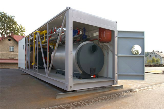 Kontejnerová přepravní teplovodní kotelna 2 x 2,1MW.