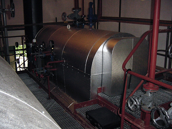 Nová parní kotelna na biomasu o výkonu 1290kW s parními rozvody.
