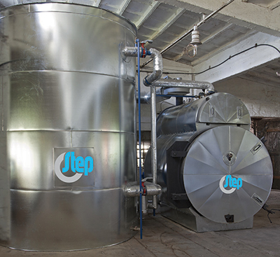 Oldřichov v Hájích u Liberce Kotelna o výkonu 190 kW na spalování celých kulatých balíků slámy pro vytápění zemědělských objektů.